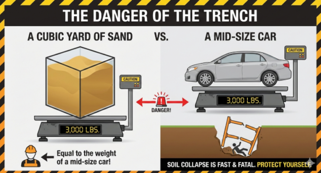 • Trench Safety: Sandy soil is prone to sudden collapse. A single cubic yard of wet sand weighs about 3,000 pounds—enough to crush a person instantly. Professionals use specialized shoring and dewatering systems to keep the site safe and dry.